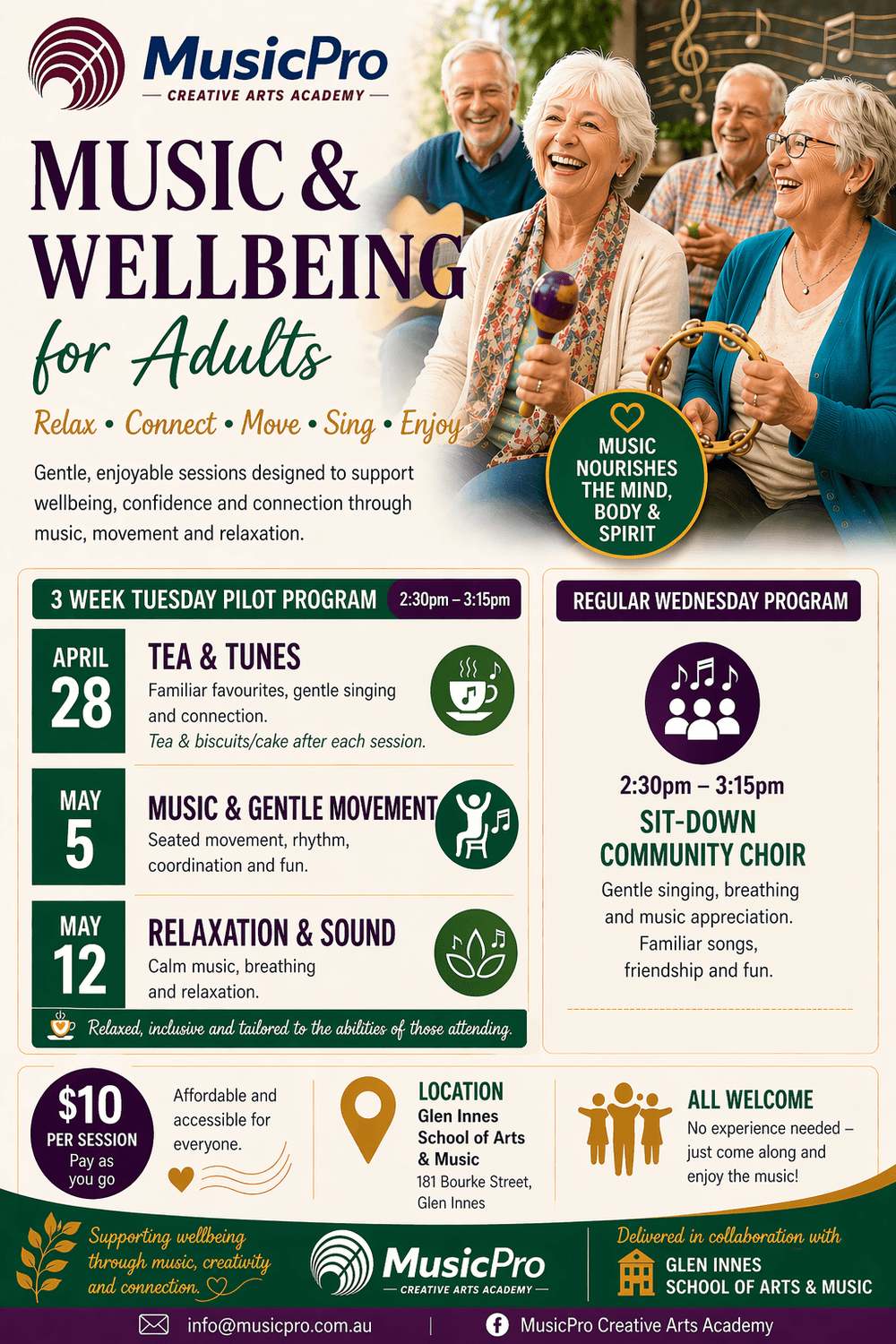 A new community-based creative learning hub delivering professional music education, ensembles, songwriting, music production and creative performance pathways for children, teens, adults and seniors.